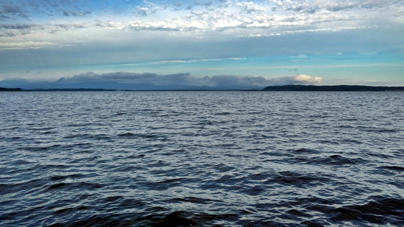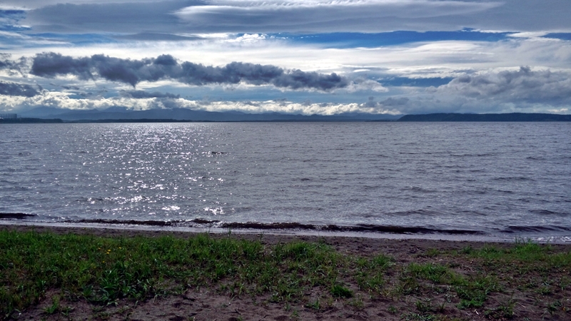 目の前は小川原湖。なんでも水温が高いらしく泳いでる人がいました。