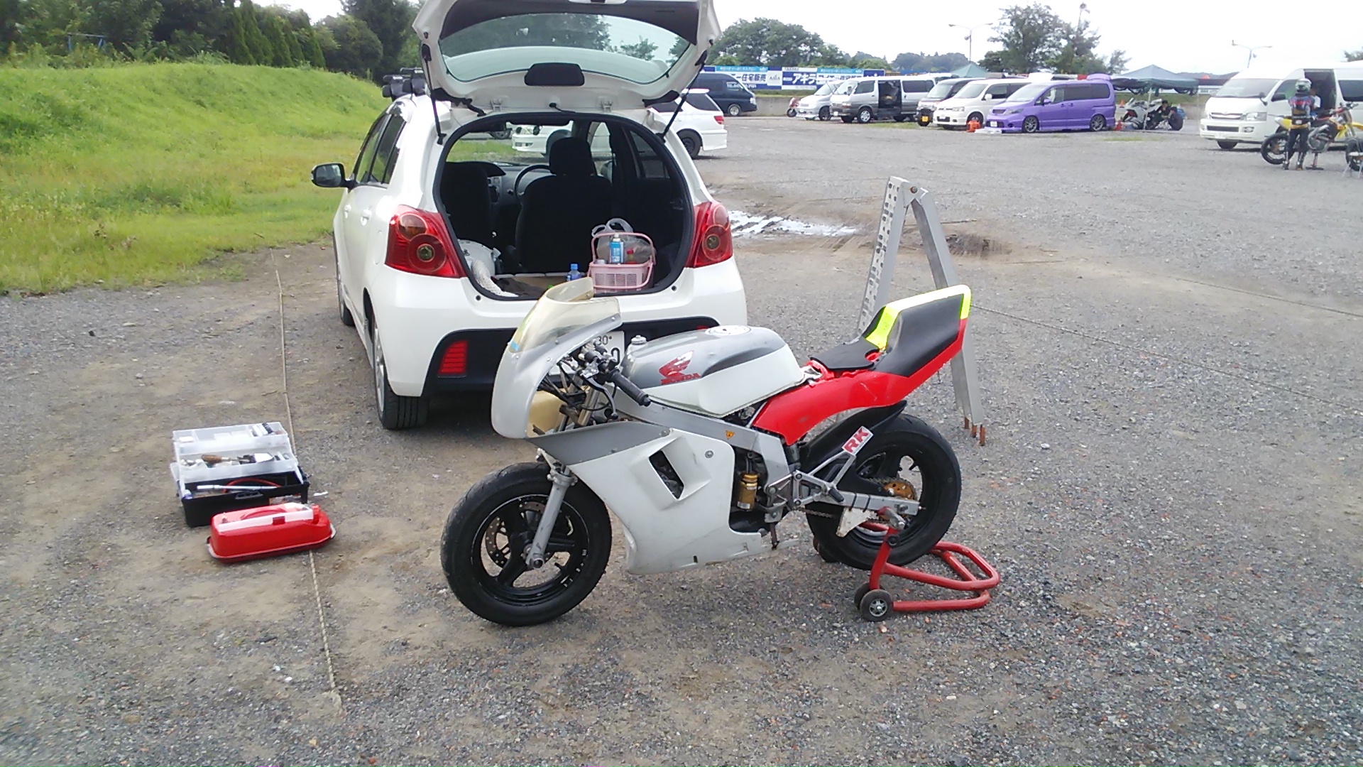 ちょっと整備して行かんと走れたもんじゃないんで積む前に軽くやっておきます。
